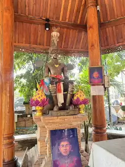 I recommend that anyone who comes to make merit can buy things from outside and bring them in. Inside, they will use a circular pattern. ✨