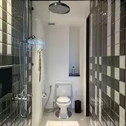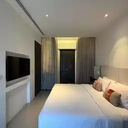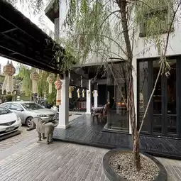 Hotel Ping Silhouette is a contemporary Chinese-style boutique hotel with a Lanna feel. It's not very big and is located in the Wat Ket area. The location is very good. It's both peaceful and has a great atmosphere because it's on the Ping River. I said it's not big because it has only 3 floors, but there are still green spaces in various areas. 🌿 And it's a very nice riverside lawn. The front of the building is white, but when you enter, it's very cool black. It gives off an Art gallery feel. 🎨 There's a goldfish pond in the middle. The interior facade is very prominent. There are holes to open and use geometric frames. The white color contrasts with the black building color, which is very beautiful. I must say that there are many corners to take pictures. 📸 There is a pond on the 2nd floor. It's an outdoor type with a view of the Ping River. The sunset and sunrise in the morning are very beautiful. 🌥 And when I went, the morning temperature was 20 degrees. It was so cool. There's also a cafe here. And the staff is good service, very smiling. The hotel is clean.