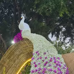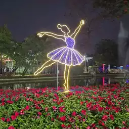 😍 The event is decorated with beautiful lights and there will be a flower car contest on February 8, 2025. There are various activities such as food, music performances, and OTOP product booths.