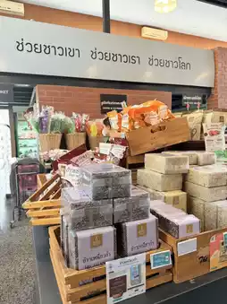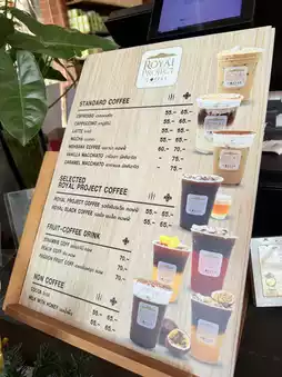 This Suthep branch of the Royal Project shop is located behind Chiang Mai University in the Faculty of Agriculture. It opens every day from 8:00 a.m. to 6:00 p.m. There is parking in front of the shop. Most of the shop sells products from the Doi Kham Royal Project, such as fresh vegetables, chicken, fish, and processed fruits or vegetables, as well as local clothing. In the shop, there is a food zone with sandwiches, waffles, salad bars, and various beverages in another corner. There are tables to sit and eat comfortably. The coffee tastes very good and the price is not expensive. Stopping here is worth it. I recommend it.