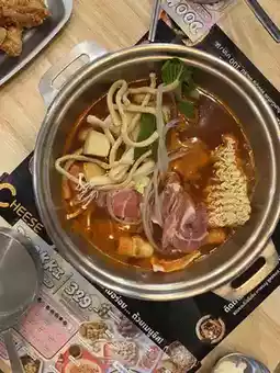 The buffet price is 329 baht per person, including drinks and 1 hour and 30 minutes of dining time. There are many types of tteokbokki and sauces to choose from to cook as you like. There are also snacks such as fried chicken and fresh seafood that can be refilled as much as you want. The taste is delicious and rich in the authentic Korean style.