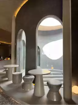 The shop is modeled after a meteorite fell on Pluto. The shop is decorated in gray and black tones, with an emphasis on curved and round designs. There are many cool photo spots and reasonably priced drinks.