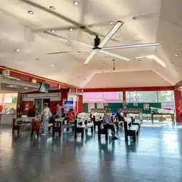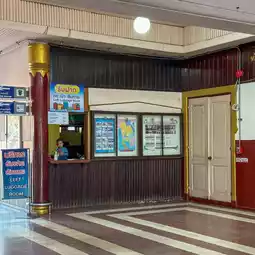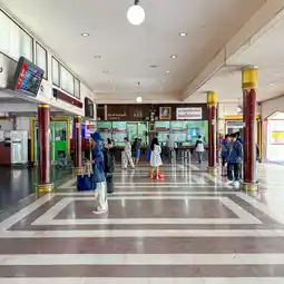 🏬 There is a ticket sales area with staff and a waiting area for travelers and the general public, including free mobile phone charging stations.