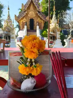 Wat Pa Daet is relatively small, easy to walk around, and provides guides on various merit-making steps at the flower, incense, and candle offering points. There is also a path to walk three rounds behind the Ganesha Shrine, which should not be missed.