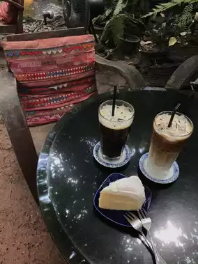 🤍Braving the heat, I sat in a relaxed and unique outdoor spot. There were many black mosquitoes due to the abundance of trees and grass around, but I loved the atmosphere. The coffee and desserts were average, but it's a great cafe for taking photos.