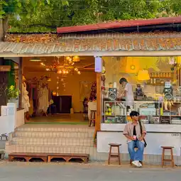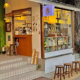 It is a small minimalist cafe full of cuteness. The atmosphere of the shop is warm and very Japanese. Sit and relax with a drink and enjoy the view of Wat Chedi Luang from the corner of the shop. It's so great. 🤍🫶🏻