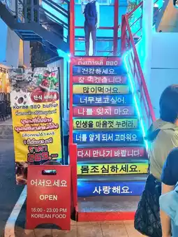✔️There was a Korean BBQ shop! I was happy to see Korean written in a fun way on the stairs!