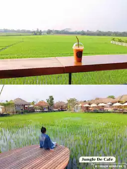 โข Jungle De Cafe ๐พ A cafe in the middle of a green rice field. It looks refreshing. There are many beautiful photo spots. โโโโโโโโโโโโโโโโโโ