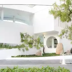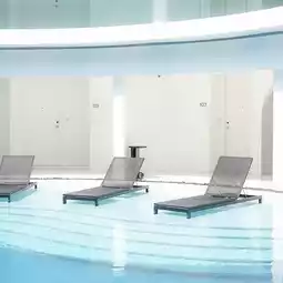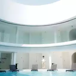 Simple and luxurious design, soft white tone, beautiful swimming pool