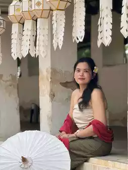 On the second day, at noon, we went to Wat Intharawat, also known as Wat Ton Kaew. I highly recommend girls to go there. It's a beautiful temple. Rent a Lanna costume to take pictures. In front of the temple, there are many shops that rent costumes. Starting at 140 baht, you get the whole costume, including getting your hair done. We ate Khao Soi Mae Mani and ended the evening by walking around the Provincial Administrative Organization Park. The day we went, there were no people. The weather was very nice. Highly recommended.