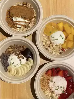 • Greek Yogurt: Smooth and soft texture, served with fresh fruit