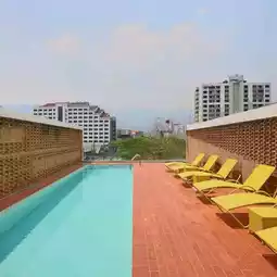 The common area here also has an outdoor swimming pool on the rooftop, with a view of the city and Doi Suthep. There is also a fitness center, a sitting area on the ground floor, and a restaurant. This is also a pet-friendly hotel, allowing you to bring your pets to stay.