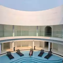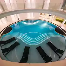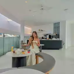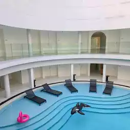 The hotel has a unique design. The building is in a circle. The highlight is the swimming pool in the middle of the hotel. It's very beautiful to take pictures.