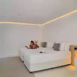 You can walk out of the room to the pool. The room is decorated in a minimalist style. It's beautiful to take pictures. The mini bar is free.