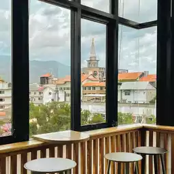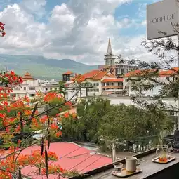 🕍🚀🚠✨ FOHHIDE, my favorite coffee shop in Nimmanhaemin, Chiang Mai~ The atmosphere is great, located on the 5th floor. You can see the full view of Doi Suthep, which is so awesome. Especially during the rainy season, the foreground is an orange peacock flower. Taking pictures here is so beautiful~