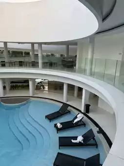 • The swimming pool is another corner that I really like. They have an open-air swimming pool in the middle of the building surrounded by rooms. It is a very unique design.