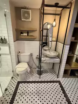 All the staff at the hotel were very polite and would smile at people, evening check-in also arranged a room very close to the pool and restaurant for me, the room also gave some small snacks, morning breakfast has a tight set is available with almost 10 options, and buffet Bar, self-service bar includes salad / drinks / cake / freshly squeezed watermelon carrot juice / dim sum / fried rice / soup powder and bread, the hotel pool many expats swimming and sunbathing ๐, if not staying in this hotel can also use their pool service only pay 250 horsepower, also very cheap! Although the hotel does not have a laundry room, there is a convenient laundry room 1 minute walk from the hotel as well as a washer and dryer, highly recommended and will definitely stay again!