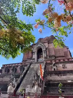 Wat Chedi Luang: The magnificent pagoda ruins tell the story of historical vicissitudes. Here, you can feel the strong Buddhist atmosphere. The mottled brick walls and the golden pagoda complement each other.