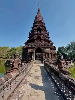 The temple’s architecture is a blend of traditional Thai and modern styles, featuring intricate carvings and a peaceful atmosphere. The surrounding area is lush with greenery, providing a refreshing environment for meditation and reflection.