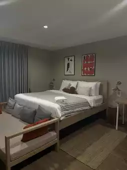 The room is quite spacious, fully equipped with amenities, and decorated in a minimalist style. It has a cozy atmosphere. The bed is very big. The accommodation is a self-service system. The accommodation will insert the key card before checking in at the mailbox. We think it's convenient. Plus, you can order food in that area via various apps. No need to wait in line at the restaurant. We ordered Sukiyaki Chang Phuak and Bua Loi to eat comfortably in the room. 😆