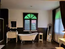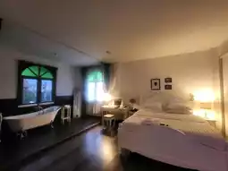 Enjoy a discount without relying on luck! The suite room on the 3rd floor of Nitra Lanna Hotel in Chiang Mai offers a spacious 48-square-meter area divided into three zones. The living area features a small portable air conditioner, a daybed, a small TV, and a minibar. The bedroom zone includes a large TV, a wardrobe, a dressing table, and a big air conditioner. The bed and pillows are incredibly soft and comfortable for a restful sleep. The last zone is the bathroom, equipped with a bathtub by the window, a toilet, a sink, and a shower. Curtains can be drawn to separate the bedroom and bathroom zones. The suite is set apart from the other two rooms on the same floor by a small staircase of about four steps and a fire escape, ensuring privacy and tranquility. Double-layered windows effectively block outside noise, making it perfect for a truly relaxing stay. Breakfast is available for an additional charge, and the staff provides excellent service. Note that there is no elevator at this property.
