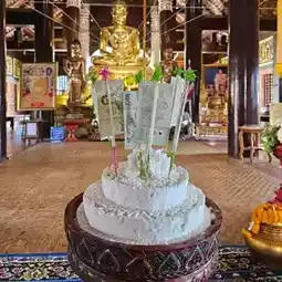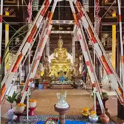 🙏🏻Outside the temple is an ancient pagoda, a large, beautiful castle-shaped pagoda. A hoist lifts the pagoda to allow the Buddha image to be bathed atop the pagoda, a symbol of good fortune. 🙏🏻