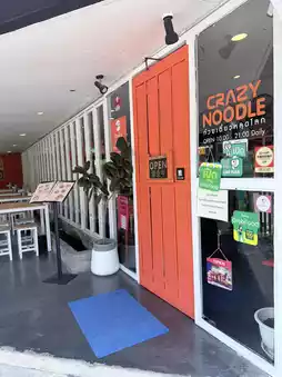 Hearing the name of the menu, I had to come and try it. Crazy Noodle or the world-class noodles is located at Sirimangklacharn Soi 13. When you enter, there is a parking lot. Many of the menus look delicious. But today, I intended to try the dry stir-fried Nam Ngiao, which uses Nam Ngiao chili paste from Pa Suk Chiang Rai. The plate is very big. The price is 80 baht. It is considered very delicious. The shop is spacious with many tables. I secretly have my eyes on many more menus. I have to come back and try them again for sure. I highly recommend it. If anyone comes to Chiang Mai, you shouldn't miss it.