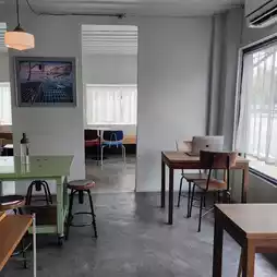 This is another shop with beautiful decorations. The shop is cool and comfortable. The seats are clean. There are quite a lot of tables. You can sit and work very chill. There is a corner that looks like a library. This corner is very comfortable to sit in. There are bookshelves up to the ceiling. The shop is quiet. There are power outlets and wifi. Overall, it is very good. I like the coffee. The staff are lovely and always smiling. The service is good. This is my first time eating here. I must say that I like the taste. It is not too expensive. It is another shop that is very comfortable to sit in.