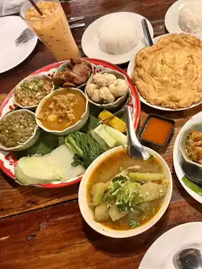 From crispy pork rinds to chili dips, the highlight is Nam Prik Ong, a tangy red curry pork relish — spicy, rich, and perfect with sticky rice!