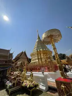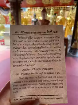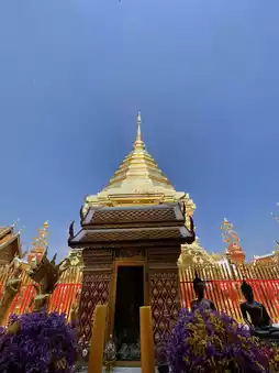 Once you arrive, you'll need to climb 306 steps to reach the temple. The view from the top offers a breathtaking panorama of Chiang Mai. The golden temple itself is awe-inspiring, leaving me with an indescribable feeling. There are guides available at the temple to help you understand how to properly pay your respects. You can even try your luck with a fortune slip!