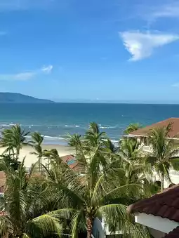 The hotel is not very large. It is a boutique hotel with only a few rooms, making guests feel private, quiet, and not chaotic. In front of the lobby, there is a small cafe corner with round tables and rattan chairs, artistically arranged under the shade of a large tree, giving a relaxing feeling, like being in a friend's house that is tastefully designed.