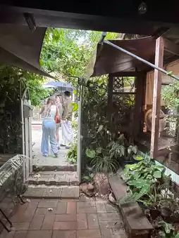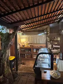 🌿 The shop is surrounded by small trees and fresh flowers, adding a soft atmosphere. Every corner is beautiful to take pictures.