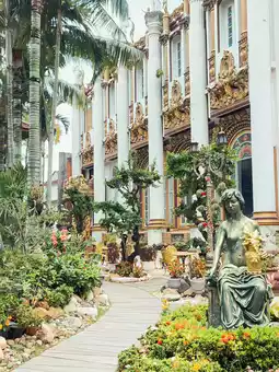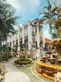 A luxurious French castle-style cafe in the heart of Chiang Mai! This is a paradise for photographers because it has beautiful gardens, fountains, and a magnificent European-style cafe corner. Walking around and taking pictures is like visiting a real palace. 📸🌿