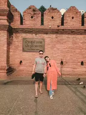 One of the most iconic landmarks in Chiang Mai, Tha Phae Gate is more than just a historical site — it’s a living photo spot full of charm and character ✨. Just look at this moment! Framed by the ancient red bricks 🧱 and golden light ☀️, this peaceful photo captures the timeless soul of the city.