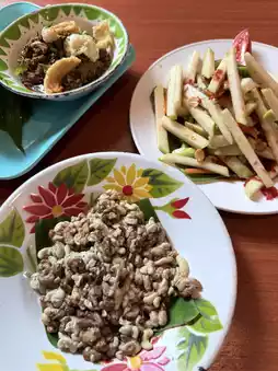 Take you to eat northern food that has been awarded Michelin for many years. "Han Thueng Chiang Mai" is located in Soi Wat Umong, Chiang Mai. The restaurant has a large parking lot and shady trees. You can sit in the air-conditioned room or outside to enjoy the breeze. There are many menus to choose from. The dishes are not large. You can order many dishes. I really like the papaya salad. It is unique and delicious. I want you to try it. Even people from Chiang Mai like it.