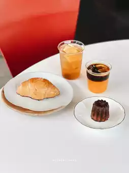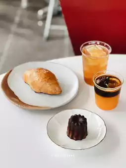 The desserts include canelé, scones, macaroon, pan toast, and cute cakes like blueberry puppy cake. They claim that the desserts are small but of high quality and not too sweet.