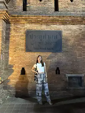 Anyone visiting Chiang Mai must not miss this place. Check in at Tha Phae Gate in Chiang Mai. The day we visited, they had a flea market. It's a flea market with a huge selection of products and a lot of tourists. Even though we didn't visit during the winter, it was still very crowded. People often come here to take photos because it's a signature of Chiang Mai. The flea market here also offers a wide variety of food. There are also many temples where you can make merit. In the evening, they also sell food at each temple. Anyone visiting Chiang Mai must not miss checking in at Tha Phae Gate.