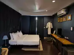 Naptel Changmoi is a small accommodation with only 4 rooms, 2 rooms per floor. The Blue Room is located on the upper floor, on the right-hand side, and is often featured in promotional materials for this property. Upon opening the door, you'll see an old pagoda. This accommodation operates on a self-check-in and check-out system. After booking, you can add the property’s Line account or call to request the front door code and the key box code. The building is over 100 years old, so the second floor tends to creak as you walk. The Blue Room features a large, comfortable bed with excellent air conditioning around the sleeping area. Adjacent to the bed is a balcony where you can stand and enjoy the view of the street. The bathtub area includes a vanity table and a sofa for daily use. The bathroom is divided into wet and dry zones. Amenities include shampoo, shower gel, two small bottles of drinking water, a hairdryer, dishes, and coffee-making equipment. The best lighting occurs in the evening when you can open the window to see the orange glow behind the old pagoda. This accommodation offers great value for its price.