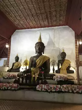 The path to the temple is surrounded by large trees and the sound of soft waterfalls makes you feel like you have entered another world. The temple has ancient Lanna art mixed with a Zen atmosphere.