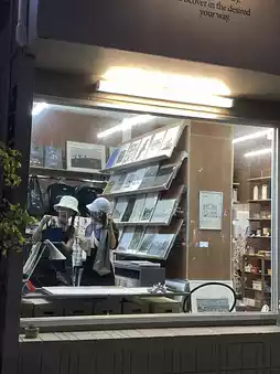 The shop has 2 floors. The upper floor is a seating area with not many seats.