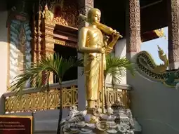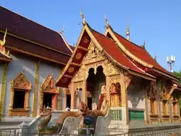 🛕..Important religious buildings include the Lanna-style Ubosot, made of concrete, marble, and gold lacquer. There is a gable made of teak and gold leaf that