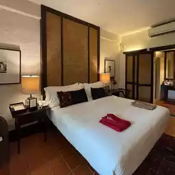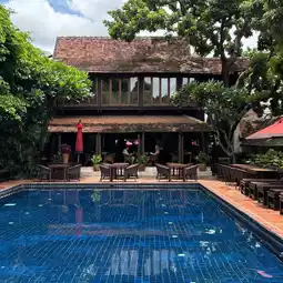 A boutique hotel in the heart of the city, featuring a large tamarind tree at its center. The serene atmosphere makes it perfect for relaxation, giving off a resort-like vibe 🛖. The hotel is located in the city center, close to many temples and near Tha Phae Gate. The entrance is adorned with bamboo arches, providing a refreshing and calming ambiance right from the start. Once inside, you'll feel the essence of Lanna culture through the architecture and decor. At the center of the property, there's a small pool 🌊 that offers a quiet and peaceful retreat, ideal for escaping the hustle and bustle.
