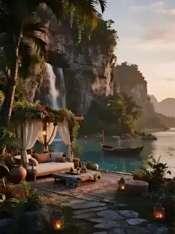 🏡 A small boutique hotel on the outskirts of Chiang Mai, decorated in a warm, modern Thai style.