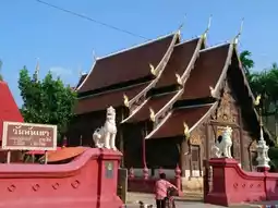 🛕..An important highlight that tourists should not miss is the Golden Teakwood Wihan or Phra Wihan Ho Kham Luang, which is built entirely from teakwood in the Chiang Saen style. Peacock patterns are carved on the pediment.