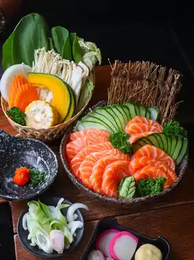 Japanese style sukiyaki buffet restaurant, add unlimited salmon