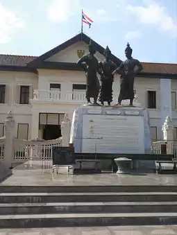 Presents the legend of the founding of Chiang Mai through simulated stone inscriptions and high-relief sculptures.