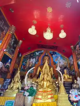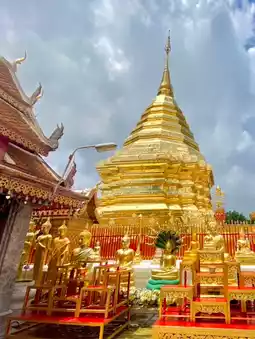 The highlight of the temple is the large golden chedi, which is strikingly beautiful.