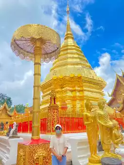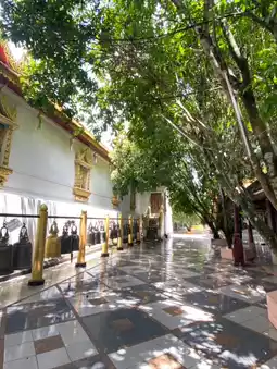 The path leading up to the temple features the Naga staircase, a stunning piece of artistic craftsmanship. The walk is shaded and not too hot, but it can be quite tiring. Upon reaching the top, visitors are greeted with breathtaking architecture and a panoramic viewpoint offering a full view of Chiang Mai city. The scenery is absolutely beautiful, and the atmosphere is incredibly serene.