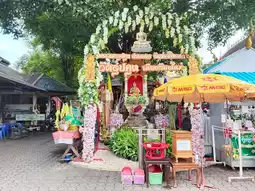 Since it is a famous temple with a reputation for asking for fortune, there are quite a few people who come to pay homage and ask for blessings. Inside the temple, there are Phra Upakut, Phra Buakhem, Thao Wessuwan, and other sacred objects for friends to stop by to ask for fortune.