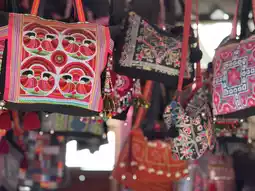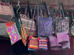 You may find a unique item that is perfect as a souvenir from your trip, such as a colorful pouch, clothing, or cloth brooch.